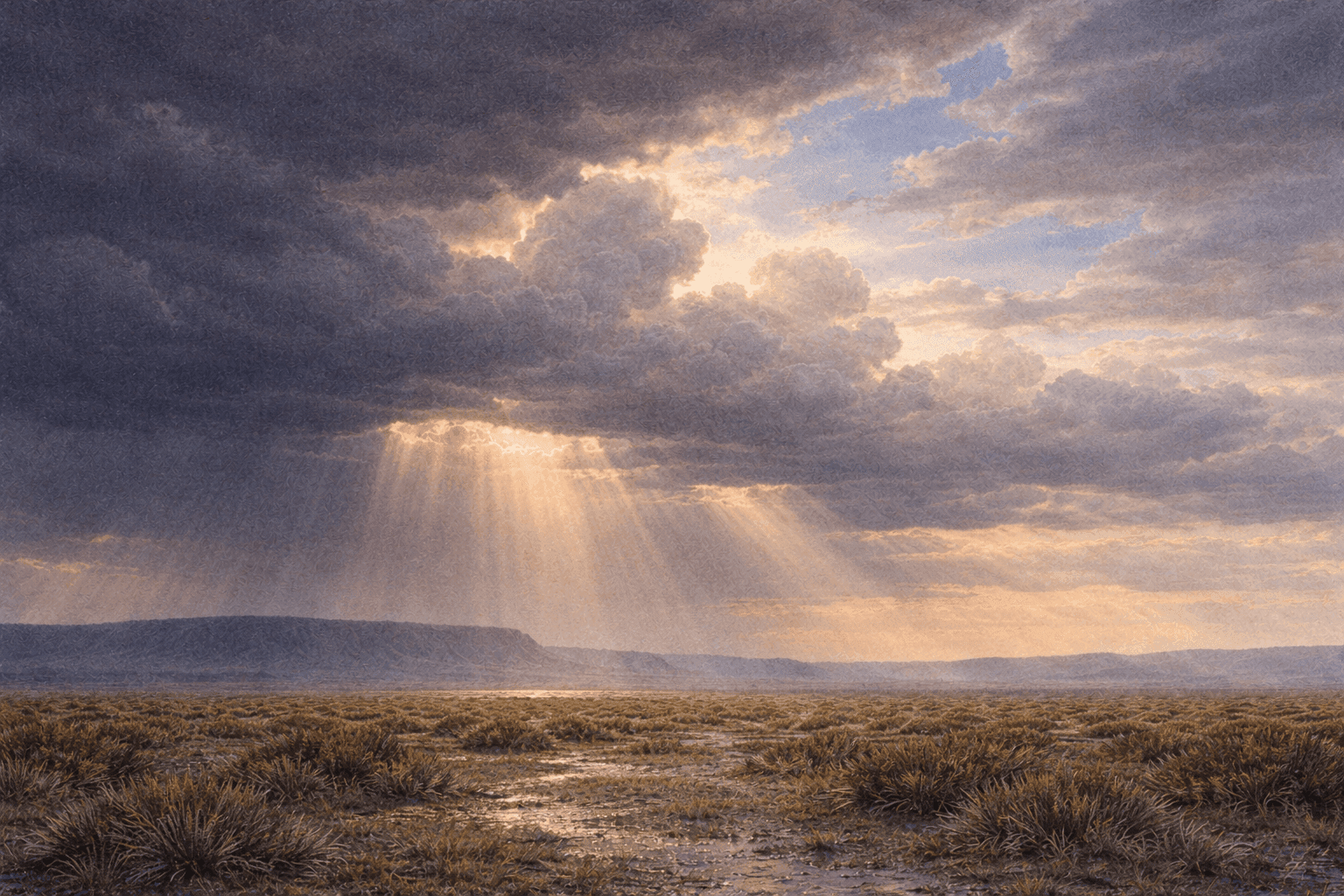 The monsoon is the land’s most direct statement. It comes every summer. It has always come. It levels the human architecture of tracks and tire marks and plans and regrets. It fills the arroyos and runs the creeks and keeps the grass green. It is not kind and it is not cruel. It is simply what the sky does over this particular ground, in this particular season, because that is the nature of this place.