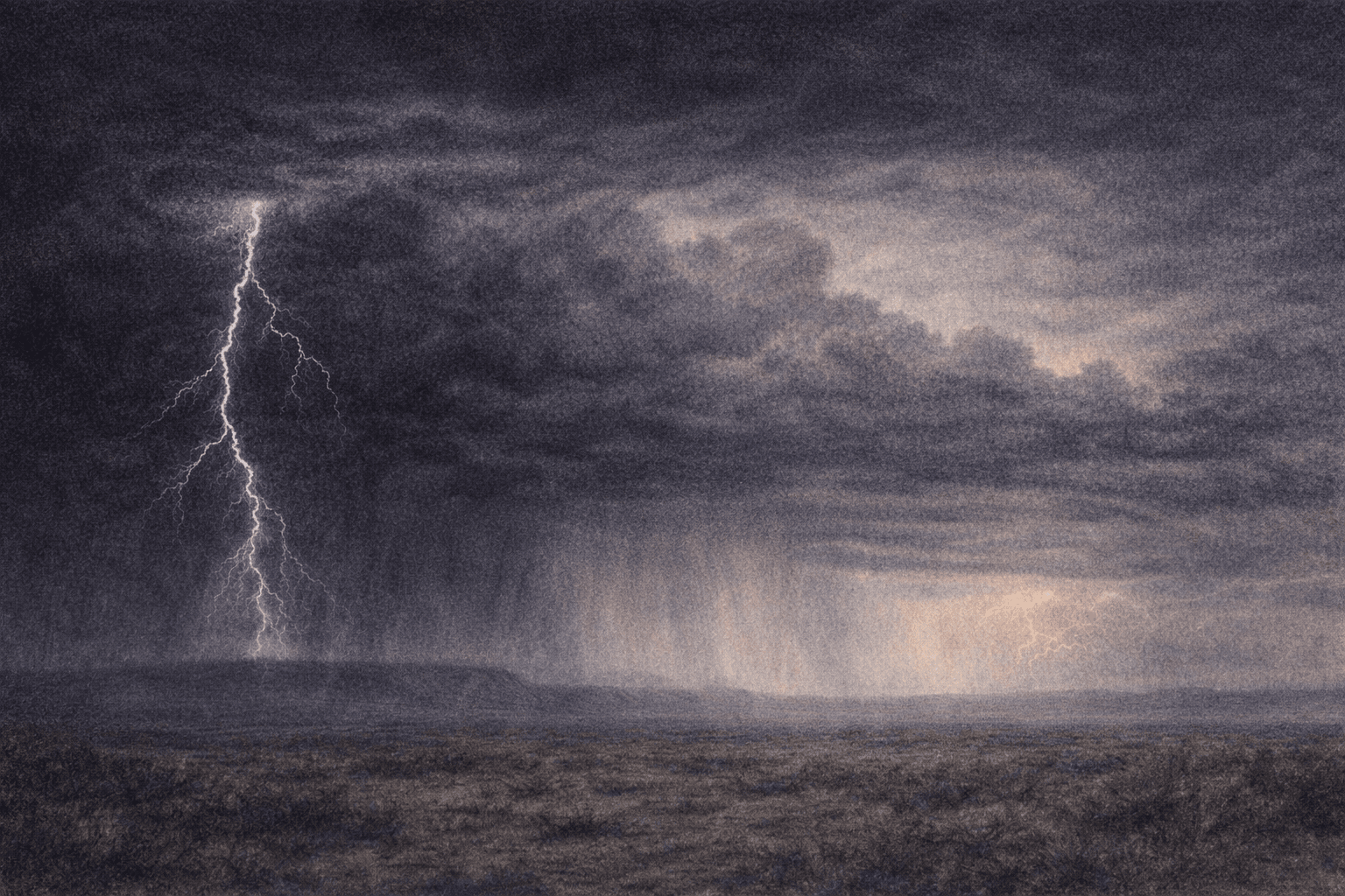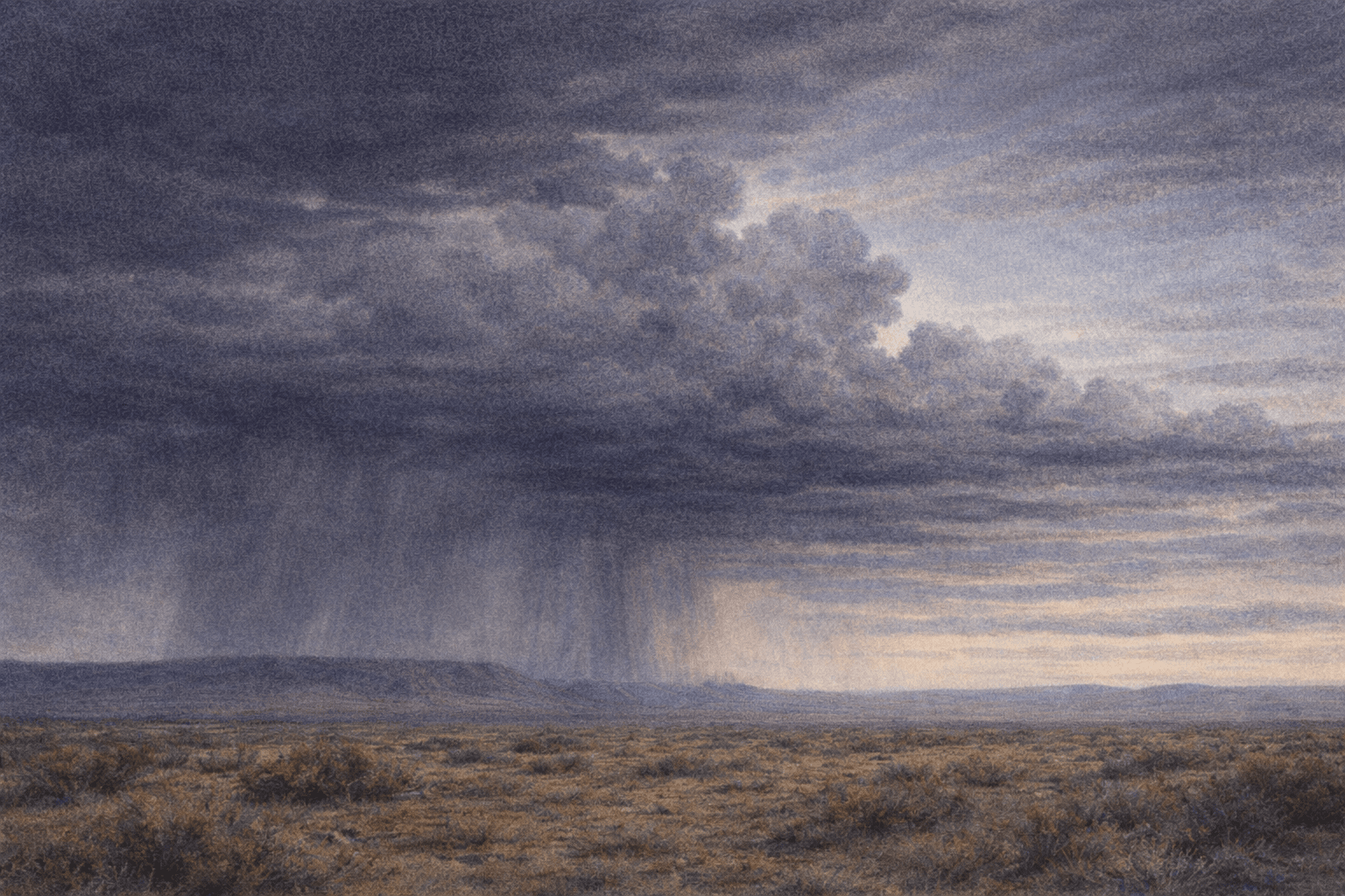 The monsoon is the land’s most direct statement. It comes every summer. It has always come. It levels the human architecture of tracks and tire marks and plans and regrets. It fills the arroyos and runs the creeks and keeps the grass green. It is not kind and it is not cruel. It is simply what the sky does over this particular ground, in this particular season, because that is the nature of this place.